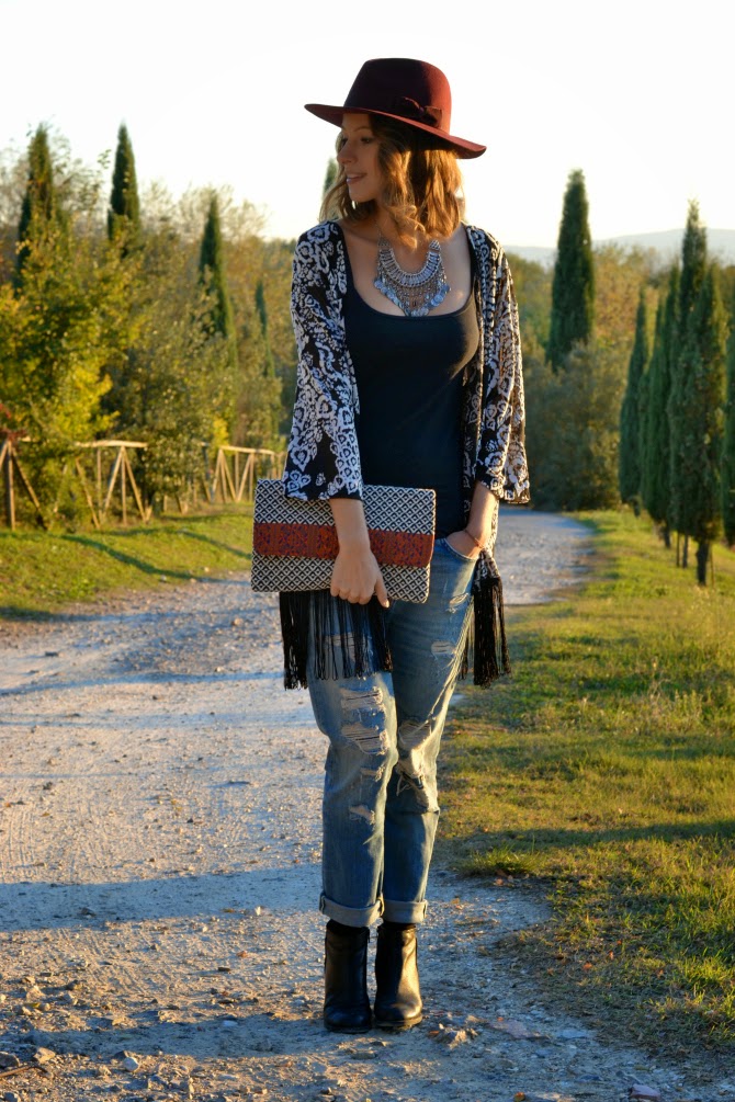 [I'm wearing: Primark kimono and bag - Zara jeans - Vagabond boots - Forever 21 necklace - H&M hat]